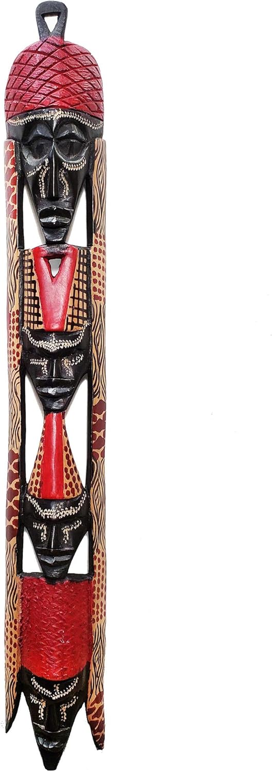 [WHAT YOU GET] Tribal Faces Masks (4) Wall Decor Each Stacked on Top of Each Other Inside a built in Carved Frame | [SIZE] Each Tribal Face is 6 Inches long and the overall size is 24x4x1 inches. | [AFRICAN MASTER CARVER] .Hand Crafted With Genuine Human Touch, Minor Differences In Color Size And Design May Occur. No Two Are Exactly Alike