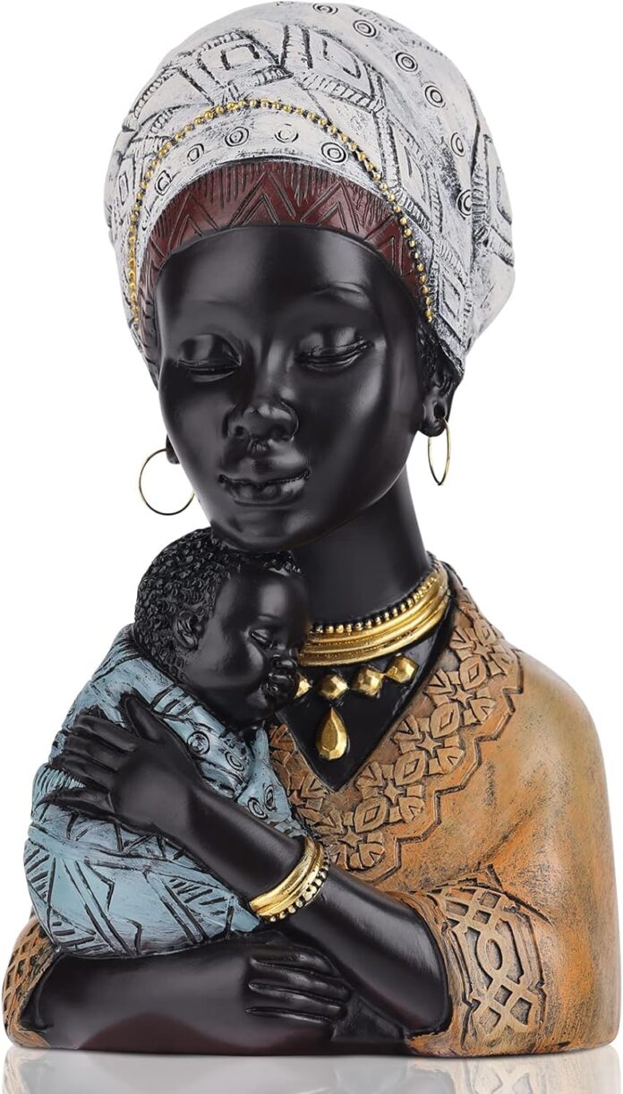 【Great design】Creative Light Luxury African American Figurines,Female African Figurines Bust Sculpture,Capture the heart-warming moments in life and show the great mother’s love with artistic expression, We hope that this African mother and child statue will touch your heart. become an emotion or mark a memory for you.