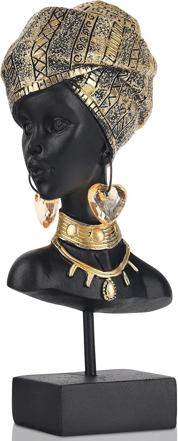 Resin Material——This black African bust is made of high quality resin material, long life, not easy to wear, easy to clean, just wipe with a rag and water, you can make it new, please do not use a rag with grainy, so as not to scratch the surface.