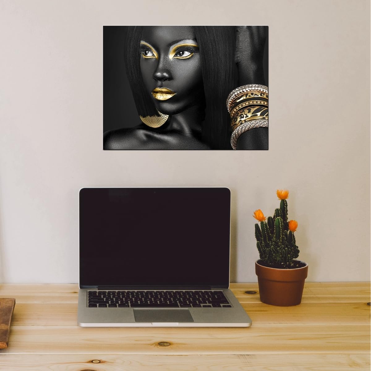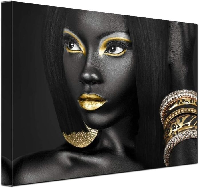 CUSTOMER SERVICE:The actual painting may be slightly different from the product image due to the different brand of monitors.Get satisfaction guarantee. if any questions, please email us first time,believe that we can make you satisfied through our efforts.Black and Golden Artwork Black Woman Canvas Wall Art