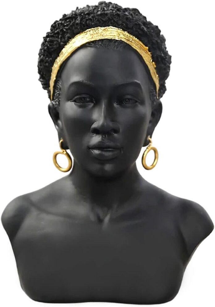 This African Statues And Sculptures Is Available In Two Colors, Black And Gold, Its Appearance Is Exquisite And Beautiful, Combined With The Modern African Fashion Shape, Designed This African American Artistic Female Upper Body Statue, This African Female Statue Well-recognized By Modern People, It Is Also The Perfect Choice For Today’s Home DecorationThis Black African Bust Statue Is Made Of High-quality Resin Material. The Biggest Advantages Of Resin Products Are 1. It Can Keep The Shape Of This African Woman Sculpture Smooth 2. It Is Not Easy To Be Contaminated With Dust 3. It Has A Strong Self-cleaning Performance 4. It Is Not Easy To Scratch And Wears 5. Durable And Long Service Life, Because It Is Durable, It Is The Perfect Choice For Home DecorationThis African Art Sculptures Is Widely Used In The Living Room, Bedroom, Office, Store, Bar, Jewelry Store, Clothes, And Hat Store, And Other Scenes. It Can Well Decorate Your Home As Well As Store, Play The Role Of Artwork To Fill The Space, But Also Earrings Necklace Jewelry Model, Is The First Choice For Home And Store Decoration