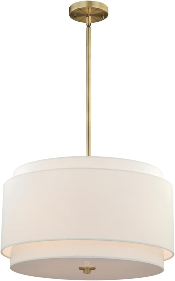 Indulge your mid-century modern dreams with this timeless collection. The collection harkens to the days of Mad Men, inch yet brings an undeniably contemporary feel to your transitional or modern interiors with its interplay of linen and brass. This larger pendant is perfect for your kitchen, dining room, living room, foyer, or bedroom. Its soft mid-century modern style is enhanced by a white linen shade, and it has an acrylic diffuser that hides the bulbs and creates even light distribution.