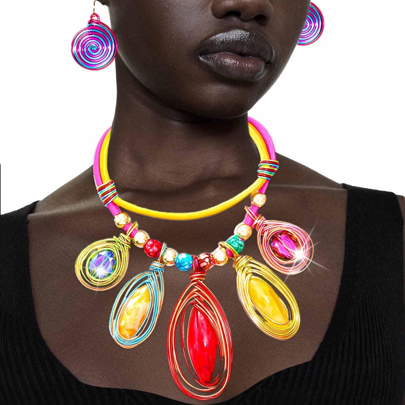 Customers like the beauty, color variety, and quality of the jewelry set. They mention it’s bold with vibrant colors, can be worn with many outfits, and has good craftsmanship. Some also say it’s worth every penny and lightweight. Customers also like its statement value and versatility.