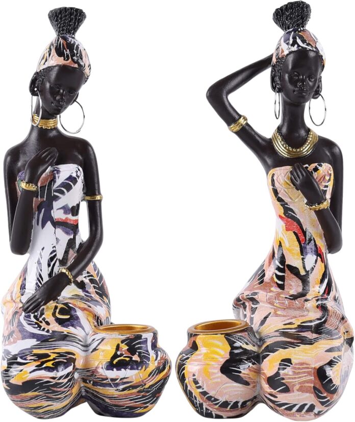 3.Crafts — These black african women statues use the natural resin materials to ensure your health.In addition,This material makes the shape of the statue smooth,With a bright texture, And finally, It is not easy to wear and scratch, Which ensures the longevity of this statue.And the water transfer printing skill makes these figurines more vivid and attractive.
