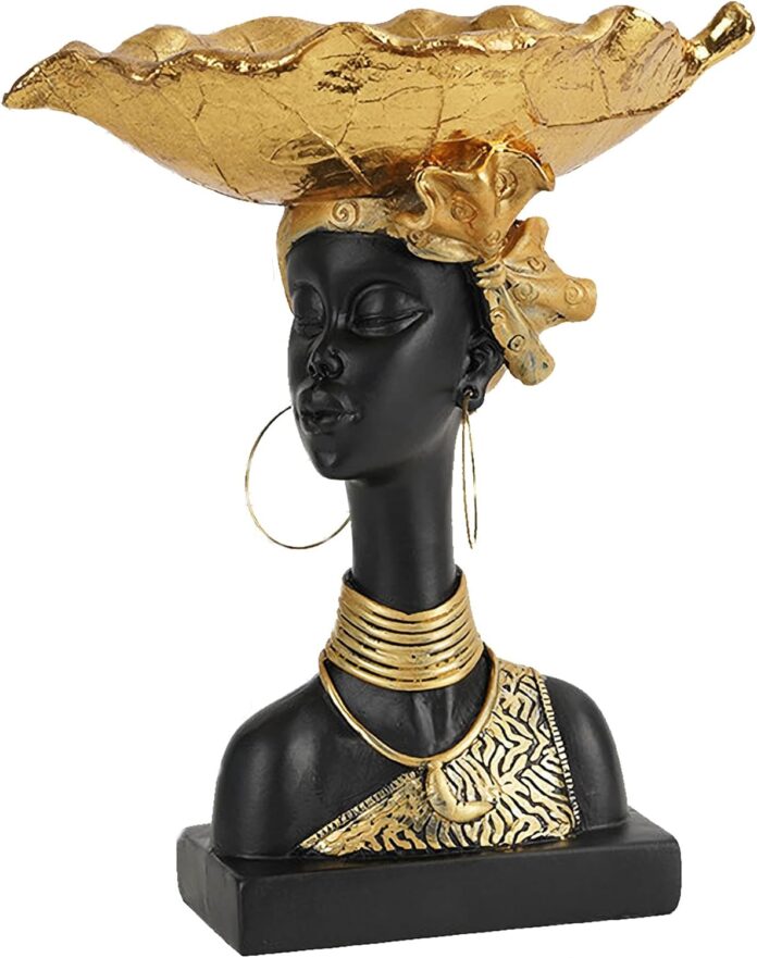 African Statue and Sculptures for Home Decorations, African Figurine Storage Tray, African American Bust Statue, Home Decor Accent, Suitable for Living Room, Office, Desktop Decor (A4)
