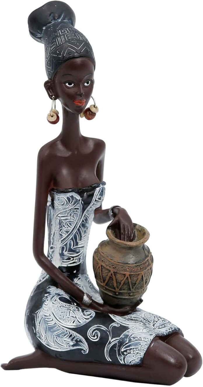 【Height and Material】This African tribal woman statue is made of high quality resin material, 9.4 inches high with numerous details, the resin material is non-toxic, long-term reliable and durable, and the surface is easy to clean.