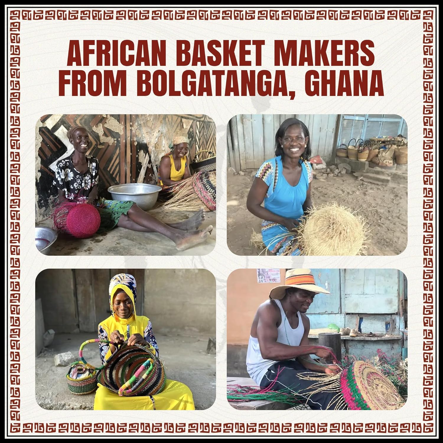 HANDWOVEN BY WOMEN IN GHANA – Crafted by the skilled hands of Bolgatanga artisans, each basket with handle is woven from vibrant, sustainably sourced elephant grass, featuring distinctive, colorful geometric patterns that celebrate Ghana’s rich cultural heritage. Each is unique, just like the woman who made it!