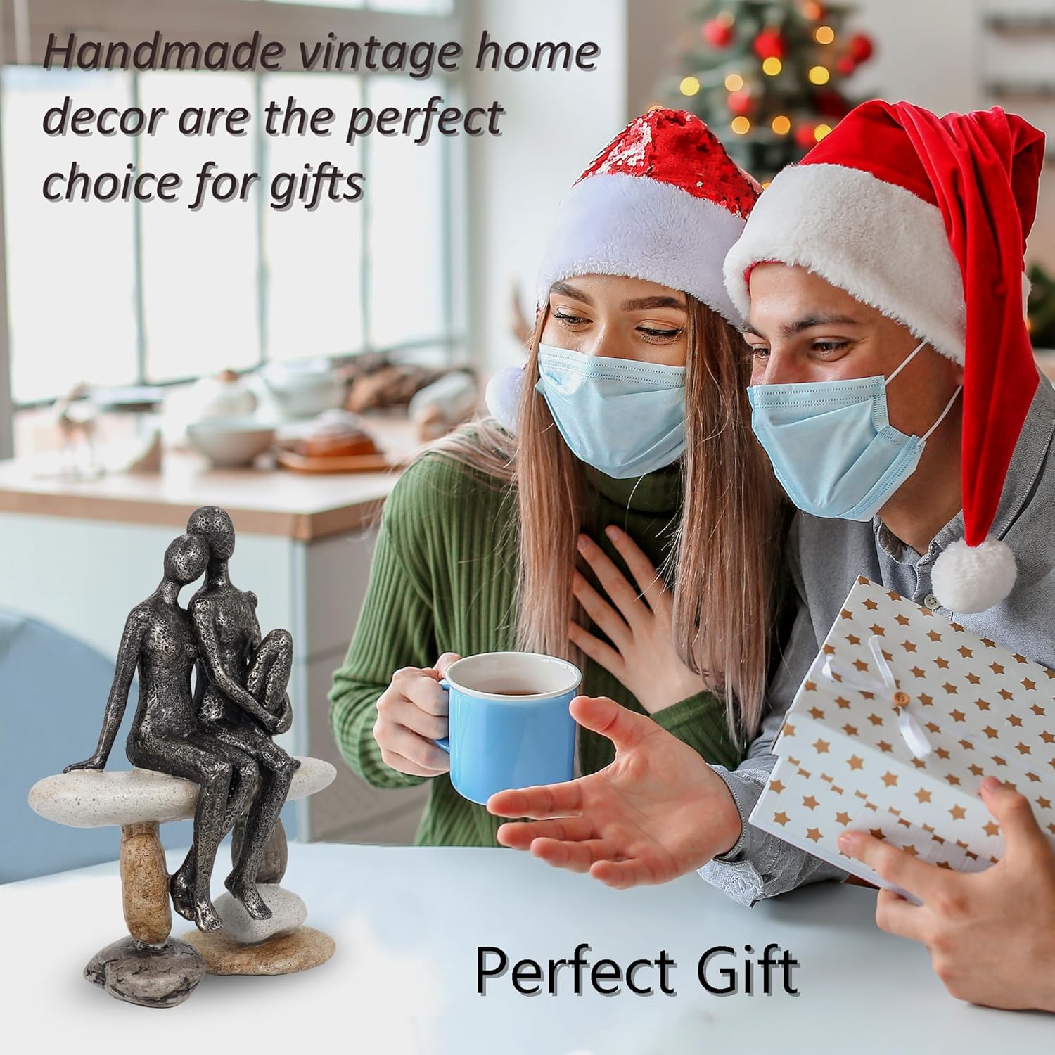 Couple Sculptures Cast Iron Gift for Anniversaries Wedding Small Modern Abstract Figurine Decorative Metal Statues Romantic Passionate Love Ornament for Couples Valentines