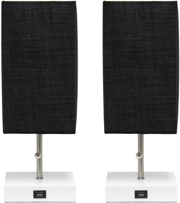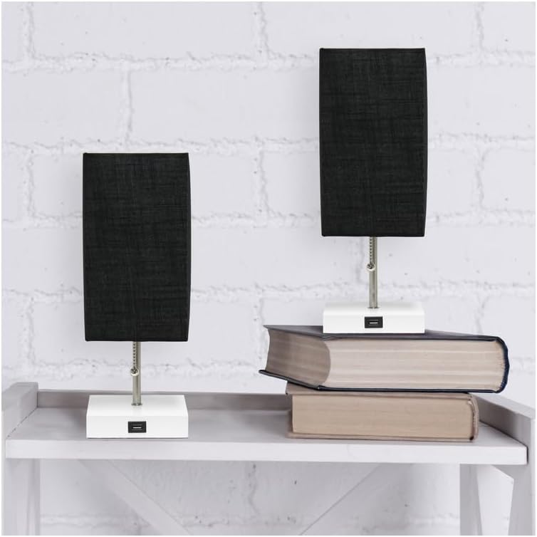 Simple yet fun, this fashionable table lamp features a white base and a fabric shade. It comes equipped with a USB seated in the base for use to charge mobile phones, handheld games, tablets, and other small electronics. This lamp will add a fabulous flair to any room. Perfect for bedrooms, and teens, college dorms, nurseries, or fun offices!
