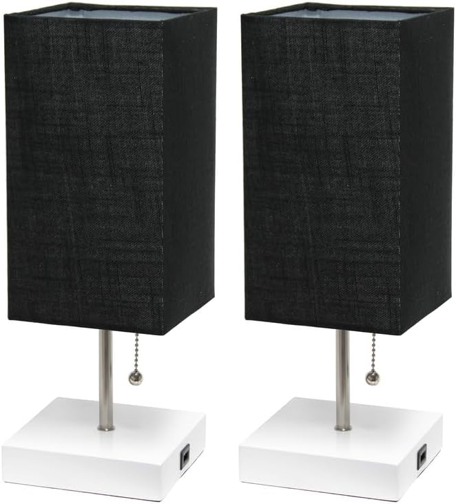 Simple yet fun, this fashionable table lamp features a white base and a fabric shade. It comes equipped with a USB seated in the base for use to charge mobile phones, handheld games, tablets, and other small electronics. This lamp will add a fabulous flair to any room. Perfect for bedrooms, and teens, college dorms, nurseries, or fun offices!