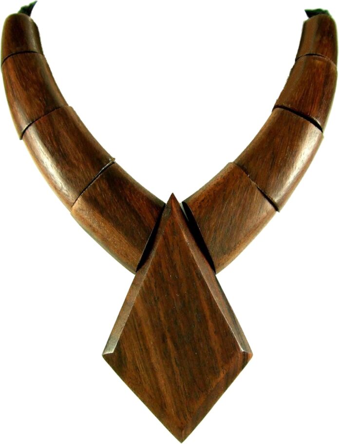 This wooden necklace features a handmade Boho tribal Sono wood necklace polished to a gloss. Sono wood is a dark-hued hardwood with beautiful natural grain pattern. It held by a gathering of striking adjustable black 6 waxed cords to create this beautiful wood necklace. Easy to wear wooden necklace for men women.