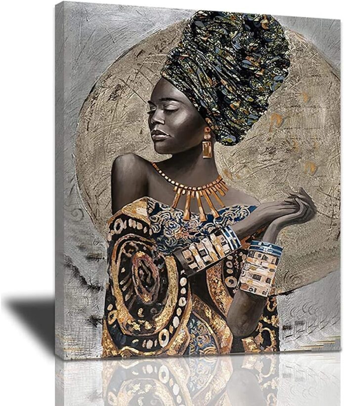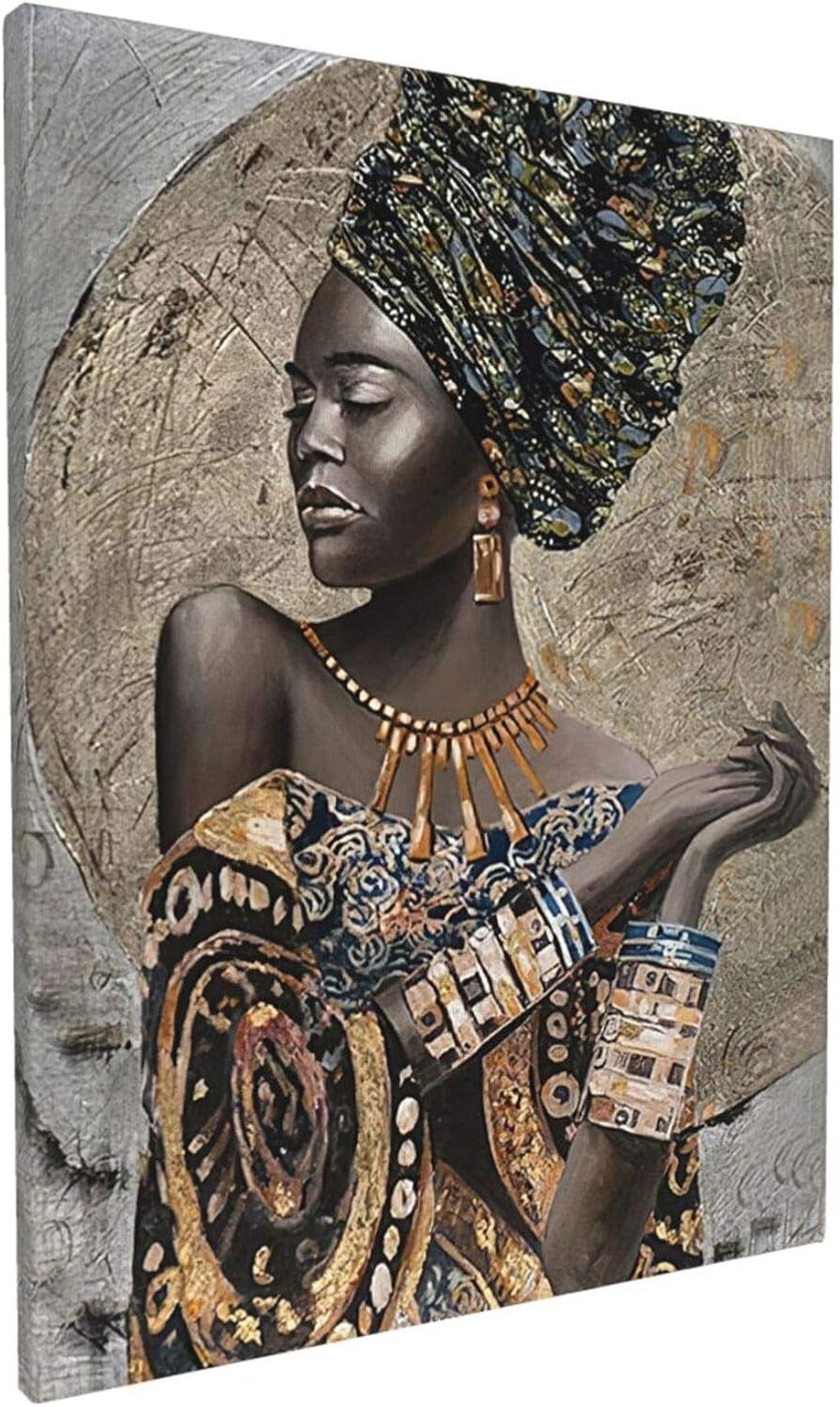 Citari Home Decoration: African American Beauty, Black Gold Beauty Women Who Have Golden Lips And Golden Eyelashes With Big Golden Earrings, Golden Necklace, Sexy And Elegant, Dignified And Charming Devout Prayer, Very Easy To Attract Attention And Become The Focus, Showing The Owner’s Style And Taste