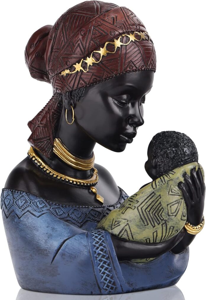 【Great design】Creative Light Luxury African American Figurines,Female African Figurines Bust Sculpture,Capture the heart-warming moments in life and show the great mother’s love with artistic expression, We hope that this African mother and child statue will touch your heart. become an emotion or mark a memory for you.