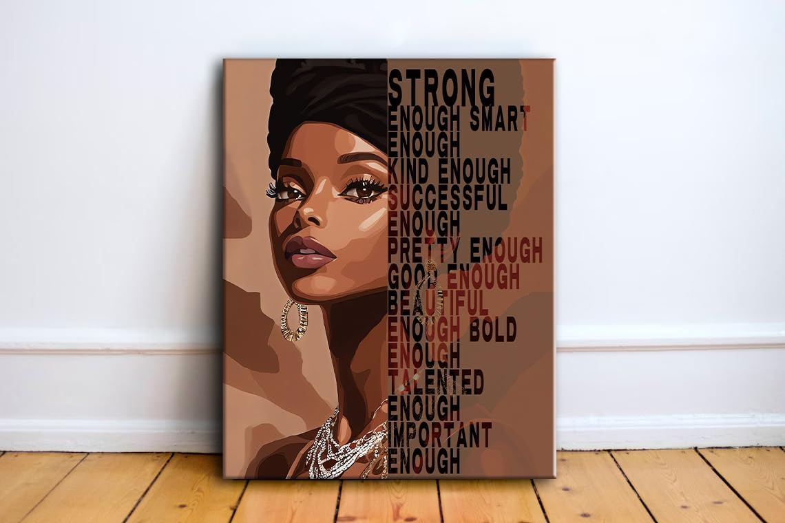 Our African American Woman Black Art may be a good choice,Bring the Inspiring Afro Black Art Sayings into the picture frame&easy to finish and decorate your home rich in vitality in just a few minutes.
