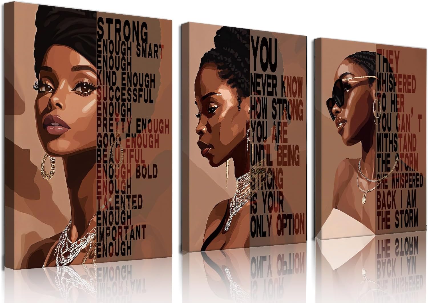 High Quality Canvas: Our Inspiring Afro Black Art Sayings are white semi-gloss artist canvas, which is more expensive than photo paper, healthy and environmentally friendly,it is not easy to fade or deform.3Pcs Framed African American Black Woman Canvas Wall Art Fashion Black Girl Wall Decor Pictures
