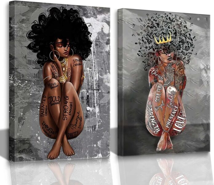 [size] black girl wall painting 12×16 inch 2 pieces frameless, you can prepare two frames with dimensions of 12 x 16 inch or larger to match your mural; self-assembly and installation