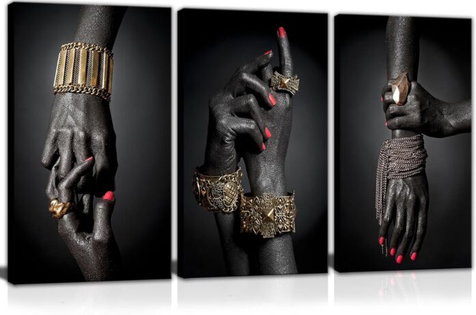 African black hand wall art the collision of black and gold, very beautiful, the multi-gold style on the hand represents the African tradition.The abstract depiction highlights the beauty and richness of African culture