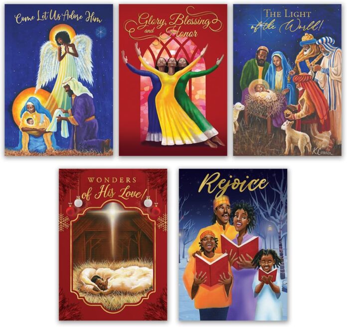 TRADITIONAL CHRISTMAS CARDS: Celebrate the reason for the season and the vibrancy of African-American culture! This collection of timeless and traditional seasonal greeting card designs feature faith-inspiring inscriptions and culturally reflective artwork gorgeously embellished with foil-stamping. Spread love, cheer, and good tidings this season with African American Expressions.