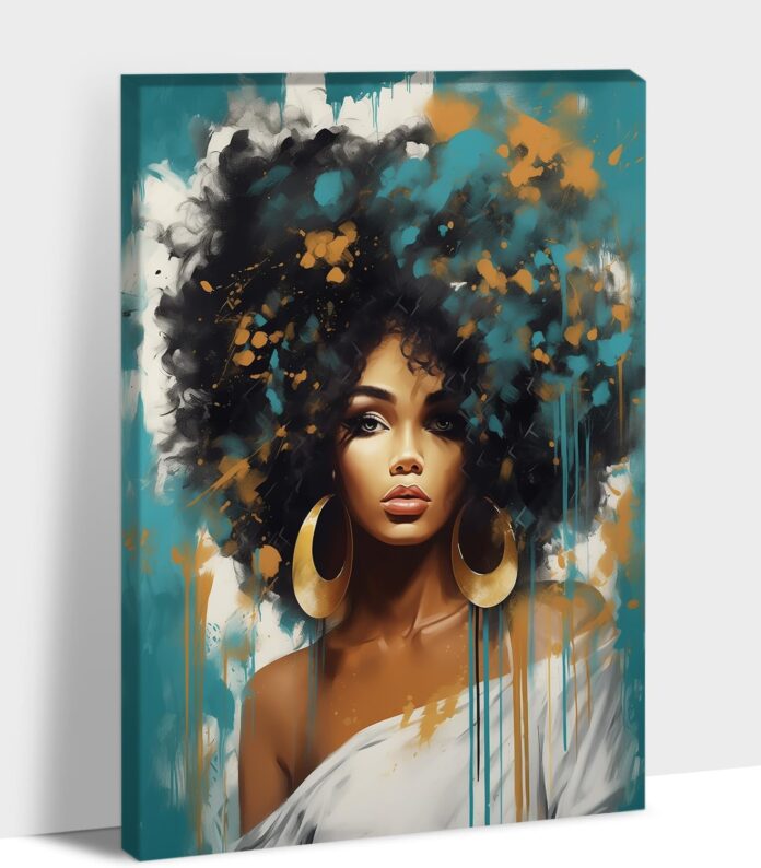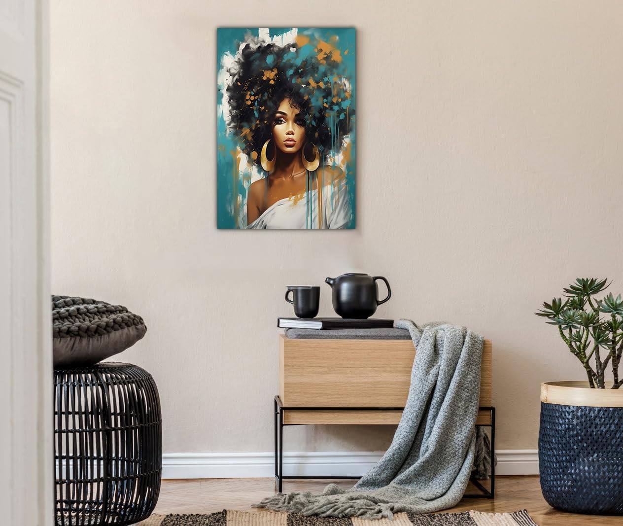 1: Bold and Beautiful: Transform your space with bold, beautiful African American wall art showcasing a powerful black woman, The teal color adds a striking touch, making this piece a standout addition to your bedroom or living room decor.