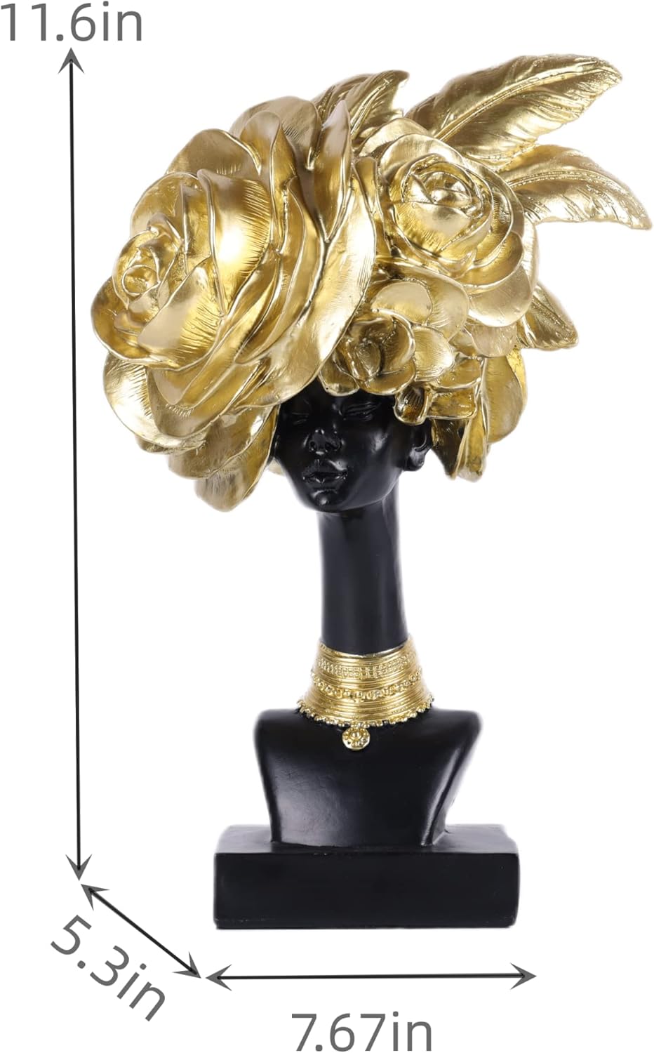 【Applicable scenes】 This black female headdress is the perfect complement to the creative handmade desktop decoration, headdress with gold roses to do dress up the figurine does not look monotonous and suitable for home decoration, living room, bedroom, office, shelves, rooms, bookcases decorative statues