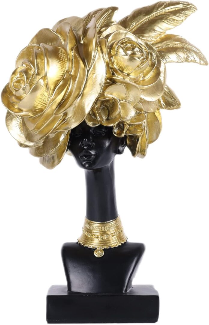【Applicable scenes】 This black female headdress is the perfect complement to the creative handmade desktop decoration, headdress with gold roses to do dress up the figurine does not look monotonous and suitable for home decoration, living room, bedroom, office, shelves, rooms, bookcases decorative statues