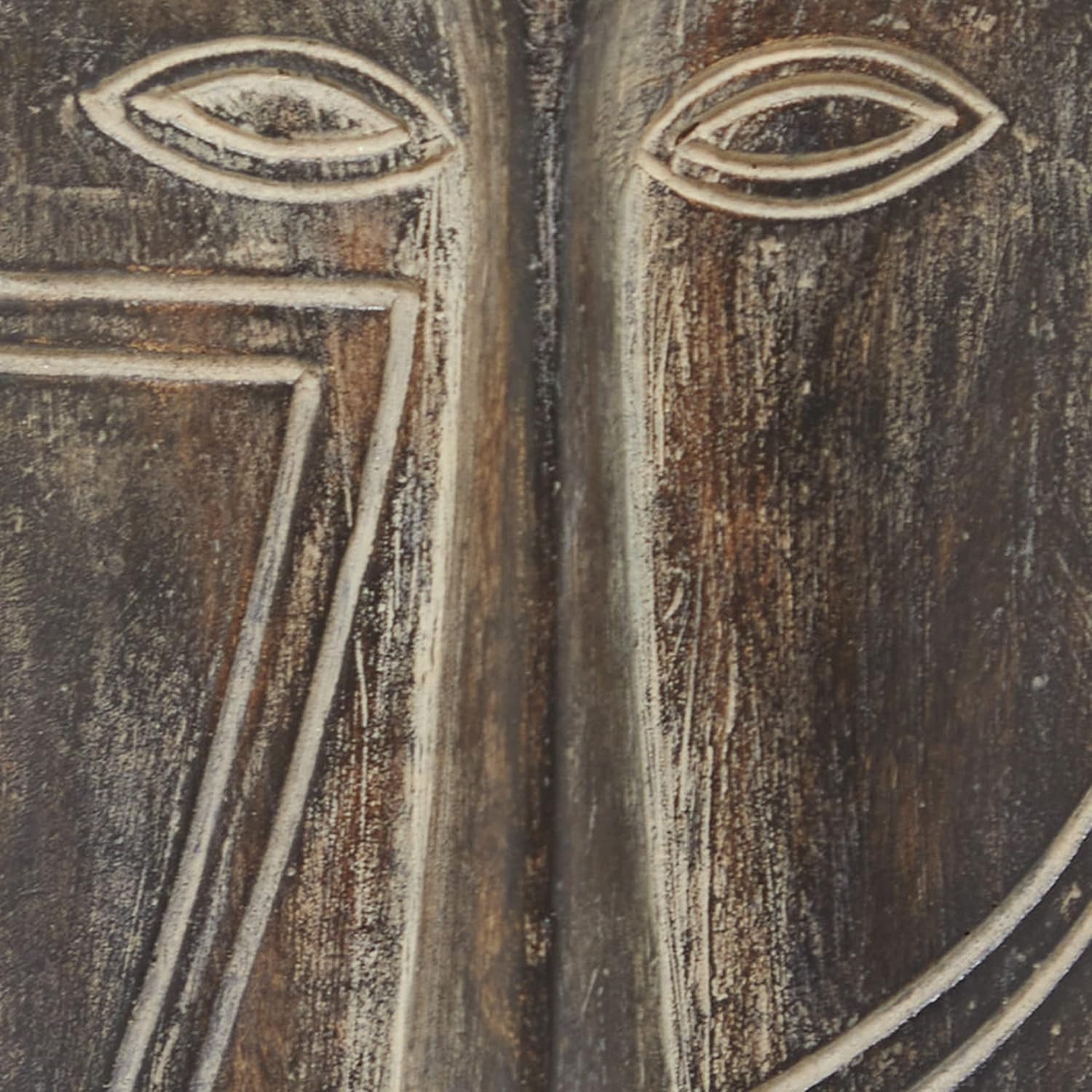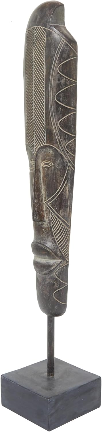 MASK OVAL ACCENT STATUE: This polystone sculpture showcases intricate carvings and a sleek slim design, complemented by a sturdy block base for stability