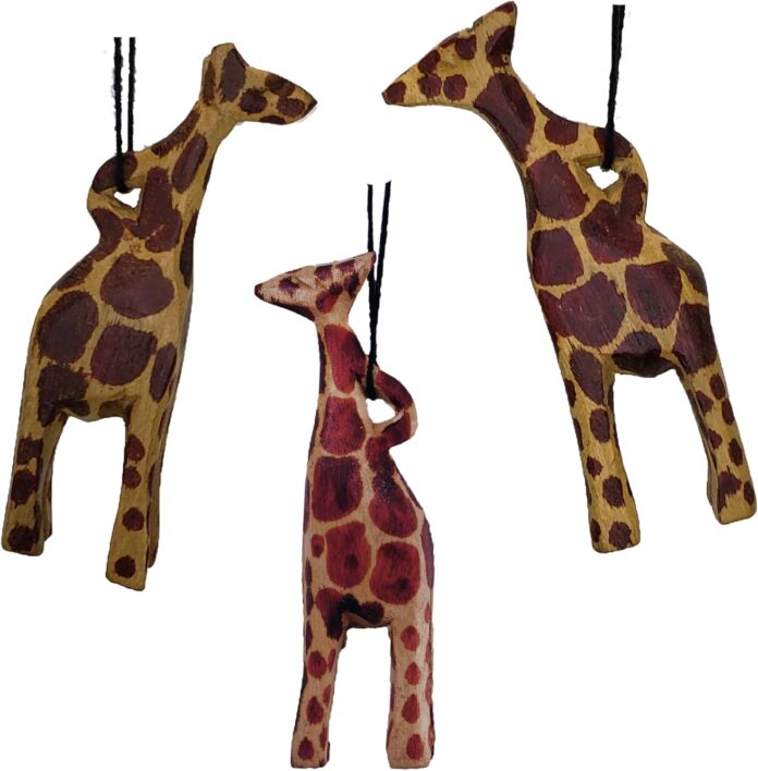 Handcrafted Wooden Giraffe Ornament Hanging Figurine Décor Art by the Tribesmen of Kenya Holiday Christmas Tree Arrangement Set of 3