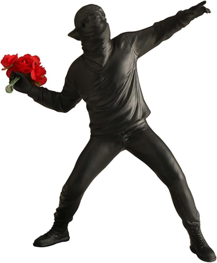 【Premium Quality Craftsmanship】Crafted from resin material, the Banksy “Flower Thrower” sculpture features a smooth surface, intricate details, and impeccable workmanship, showcasing superior quality.
