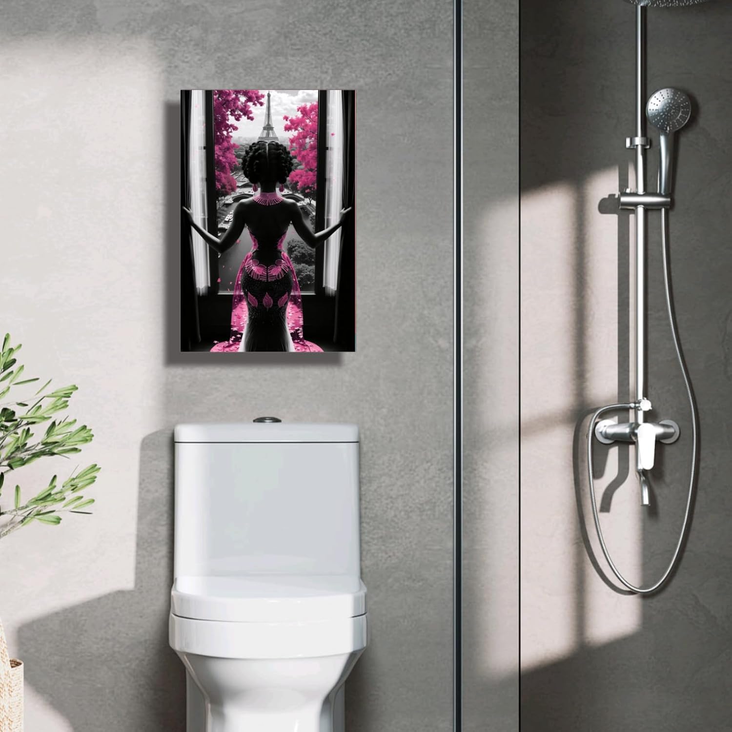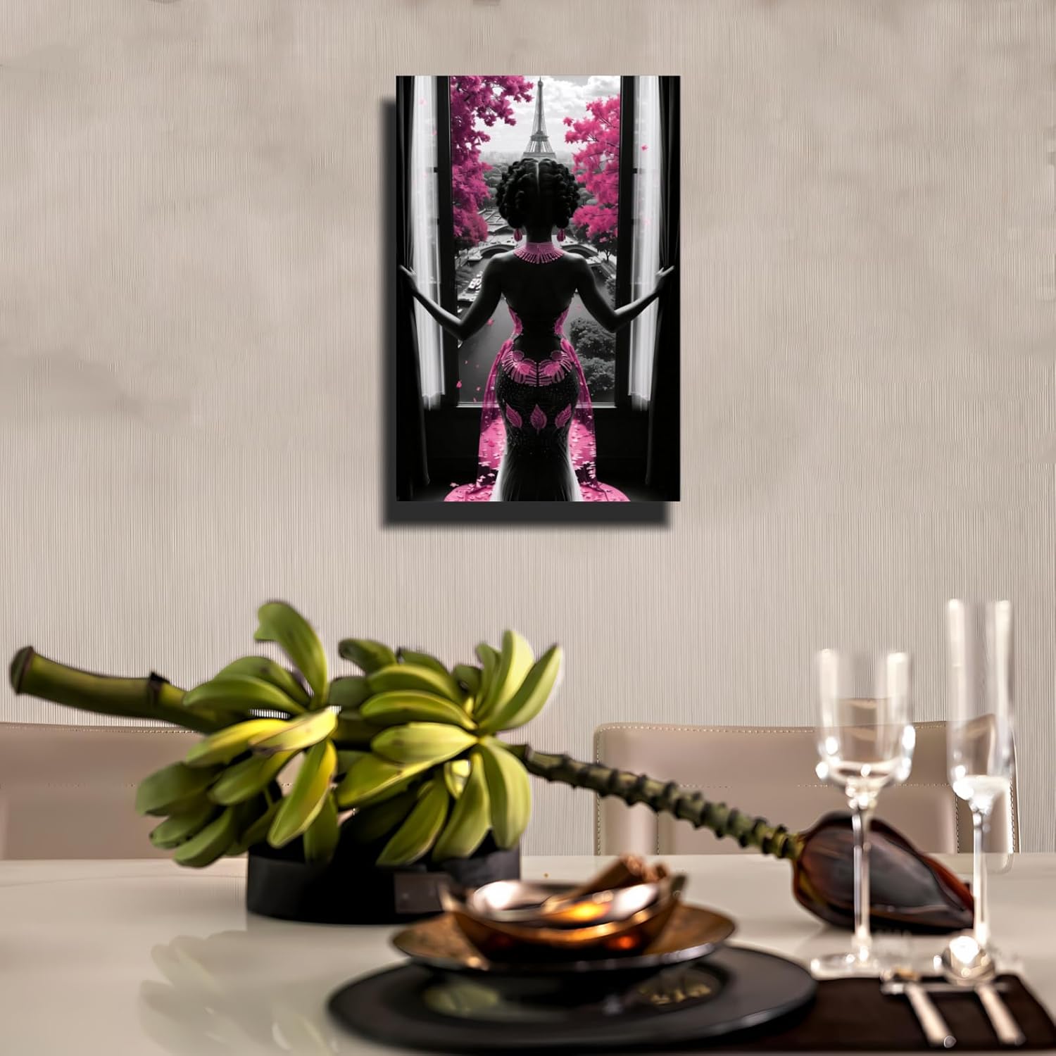Fashion Paris Women Art:This African American women themed canvas combining elements like the Paris bathroom wall art decor,Eiffel Tower pictures for bedroom,black women bathroom wall and natural landscape with paintings,adds modern simplicity and aesthetic elements, It is a special bless for yourself or your family and friends.