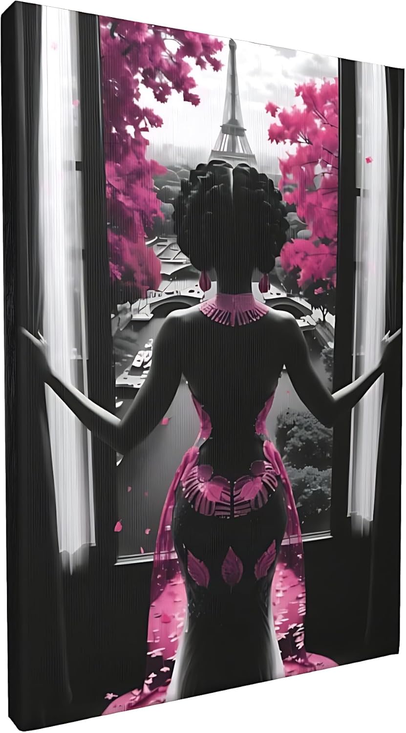 Paris Pictures Pink Poster : African pictures paintings wall decor, suitable for home wall decor, including black and pink canvas wall art for living room,pink pictures for bedroom,pink and black bathroom wall art decor, and meditation rooms, effortlessly elevating the aesthetic appeal of any environment with spa teal floral wall art and zen decor.