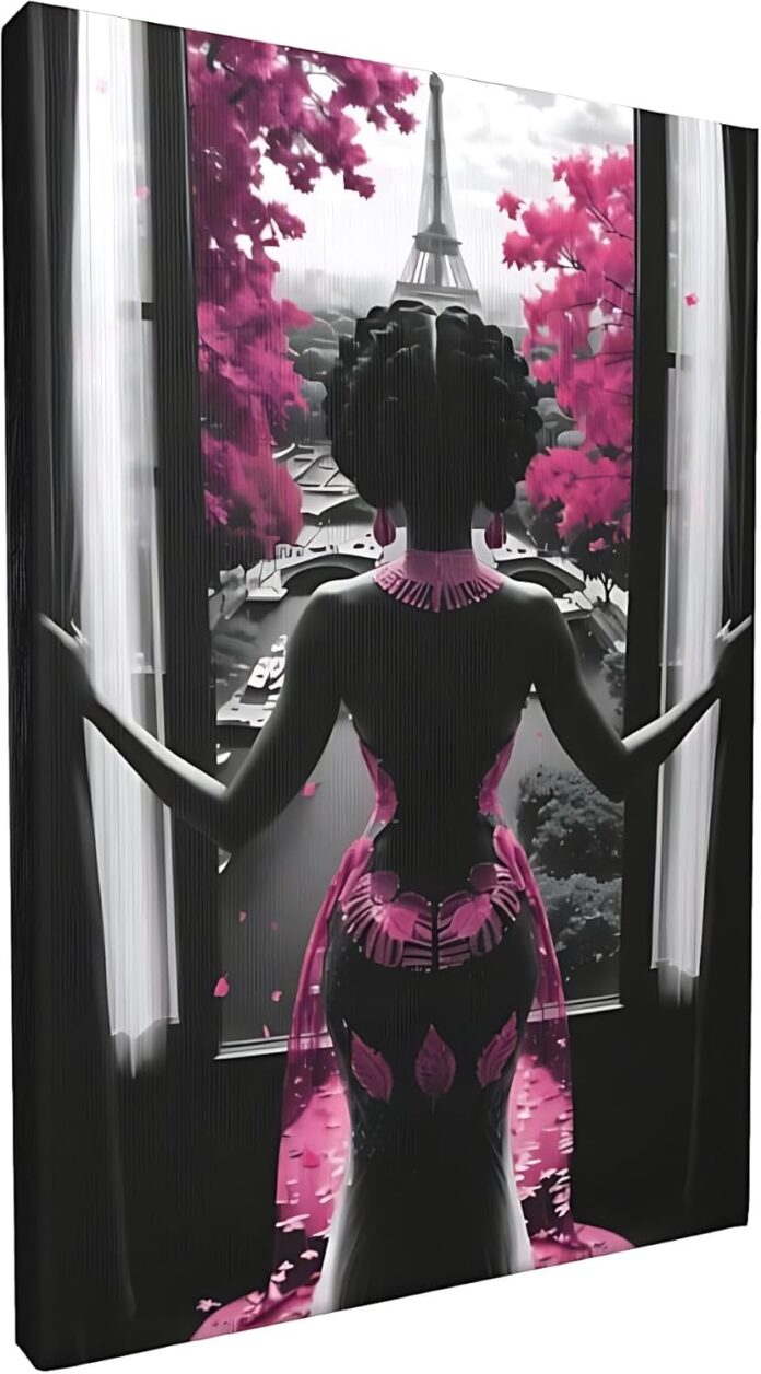 Fashion Paris Women Art:This African American women themed canvas combining elements like the Paris bathroom wall art decor,Eiffel Tower pictures for bedroom,black women bathroom wall and natural landscape with paintings,adds modern simplicity and aesthetic elements, It is a special bless for yourself or your family and friends.