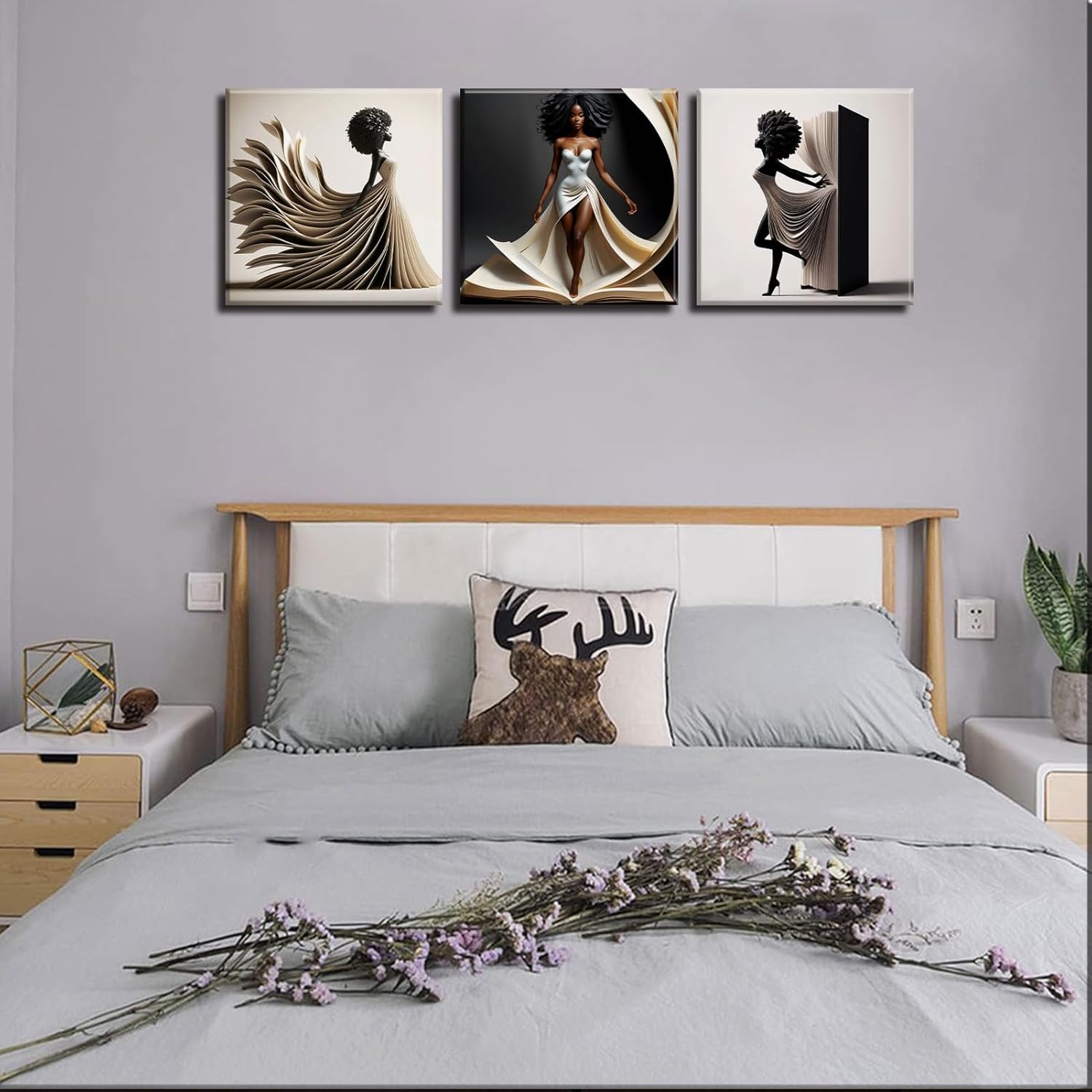 Living Home Room Wall Art : 20x20x3Pcs in, framed. Black woman Canvas Wall Art decoration. Hang it on the wall and the room will become colorful