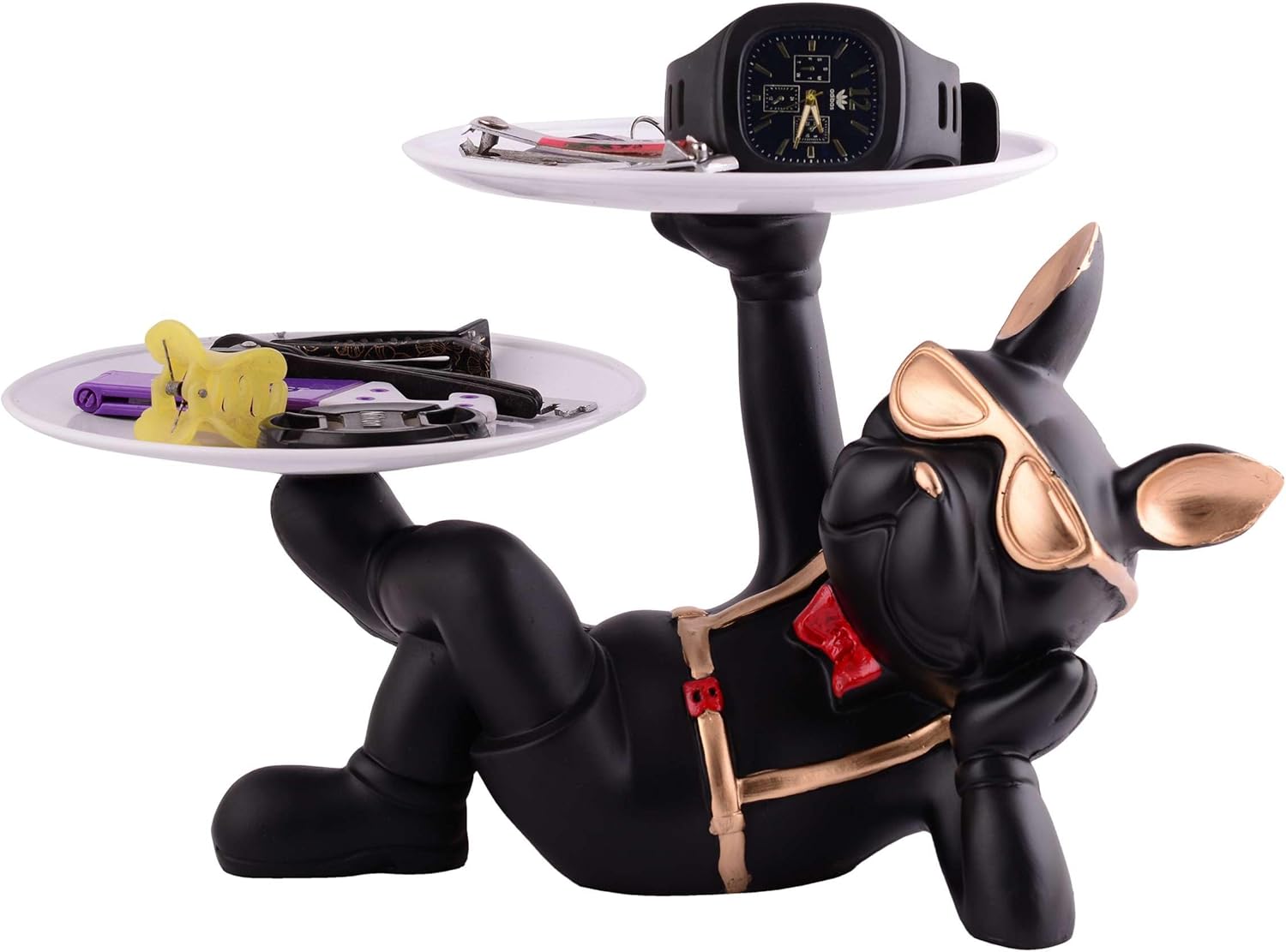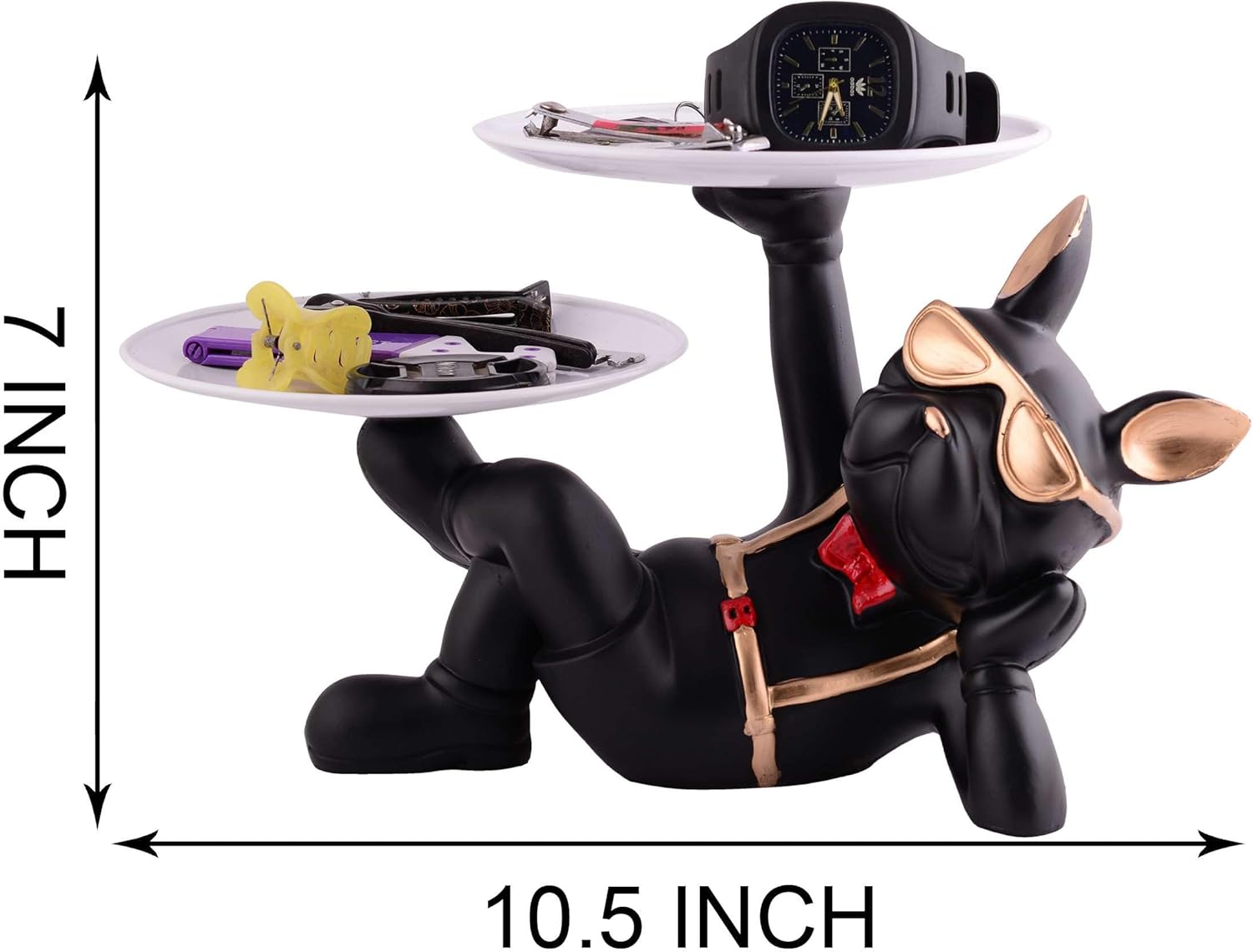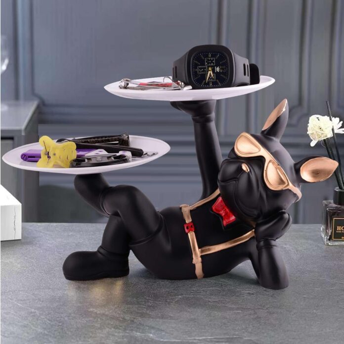 Resin Cool Dog Sculpture Bulldog Storage Tray used for Used as a debris container or candy box, which can store mobile phones, keys, Wallets, glasses, remote controls, etc.
