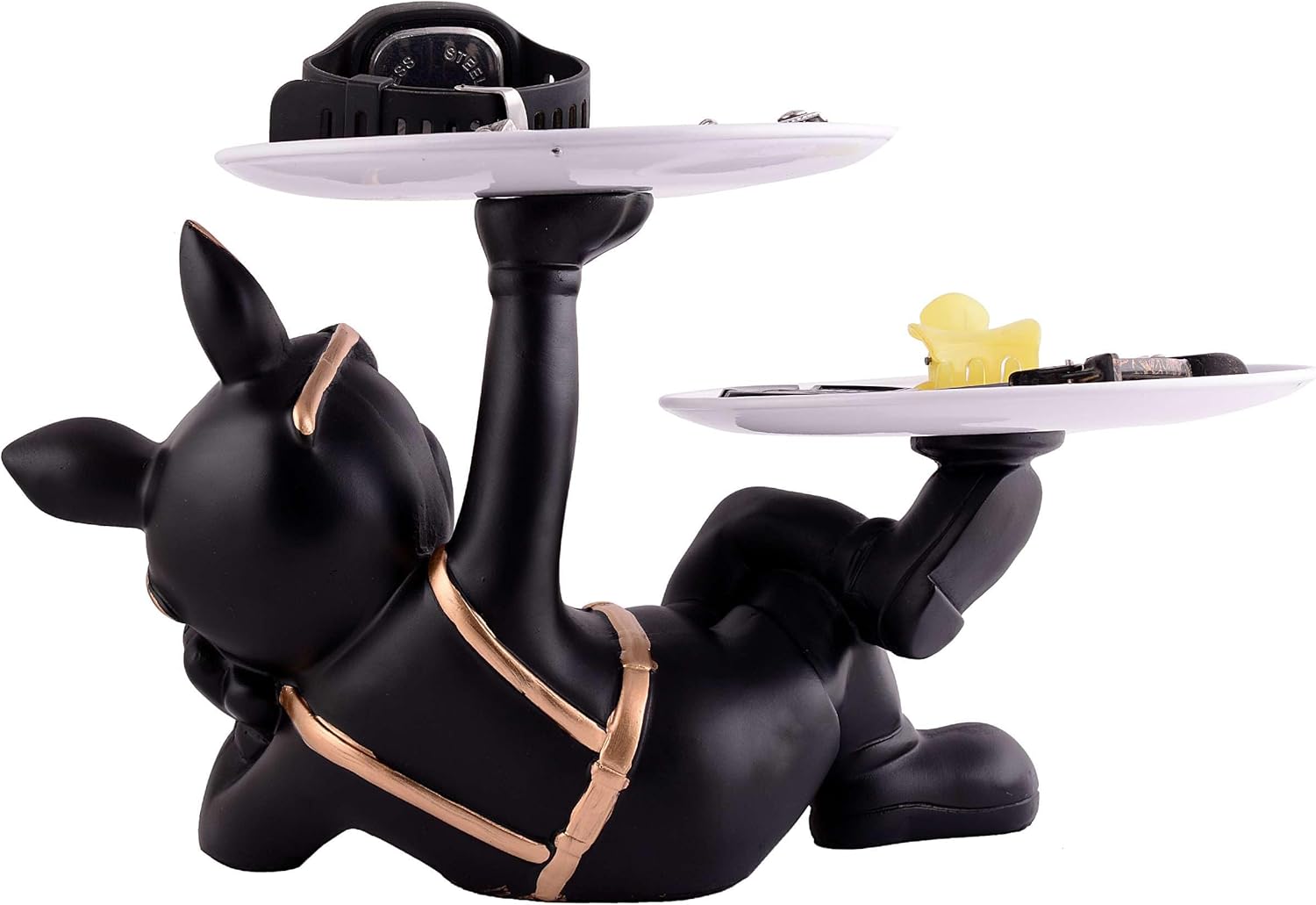 Resin Cool Dog Sitting Sculpture Decorative Figurine Storage Tray Entrance Table Key Holder Candy Snack, Juice Glass, Modern Art Statue for Home Desktop Ornament Decoration