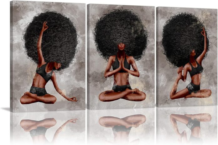 These Black Woman Yoga Canvas Paintings are designed with Elegant African American woman doing yoga and grey vintage style background, it can generally be used as bedroom decoration, living room decoration, bathroom wall art decoration, home gym decor, office wall decor, especially your yoga room wall decoration, it’s a gorgeous way to dress your blank and boring walls.