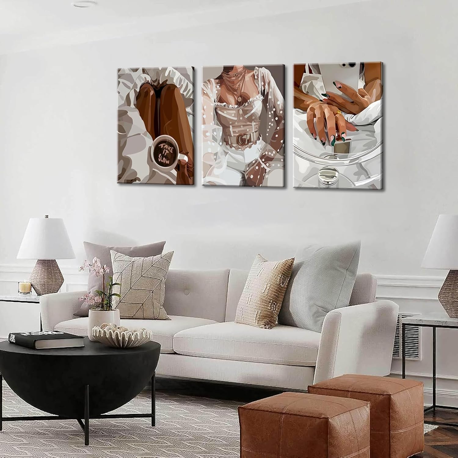 African American Wall Art: Each black woman art features a unique portrayal of a black woman, capturing the essence of their strength, elegance, and individuality. The use of vibrant colors, intricate patterns, and abstract designs adds a touch of modernity to these African American female portraits, making them perfect for any contemporary aesthetic