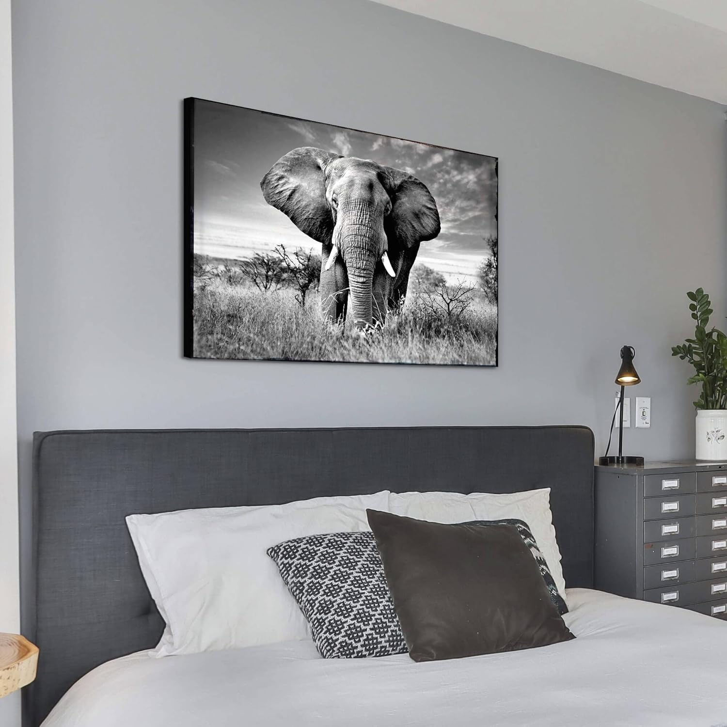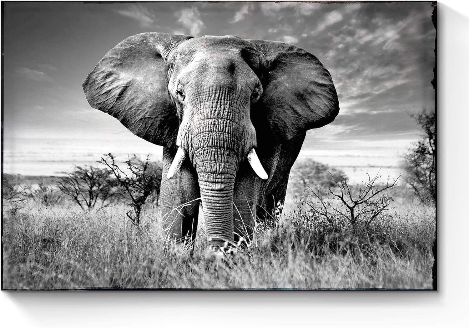 ELEPHANT PICTURE WALL DECOR: The elephant wall decor comes professionally gallery-wrapped. Tightly stretched across a sturdy shrink-resistant wooden frame and stabled on the stretcher bars, the african elephant painting is of longer durability for displaying on the wall