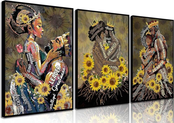 Decorative Gift: African American Wall Art Sunflower Canvas Poster Artwork Can Not Only Decorate Anywhere In Your Home, But Also Add A Sense Of Space And Artistic Atmosphere To Your Home. This Gift Idea Is The Best Greeting For Father’S Day, Mother’S Day, Birthday Party, Christmas, Anniversary, Valentine’S Day, Thanksgiving Day And Other Festivals, And It Is Also The Best Choice For Gift Giving