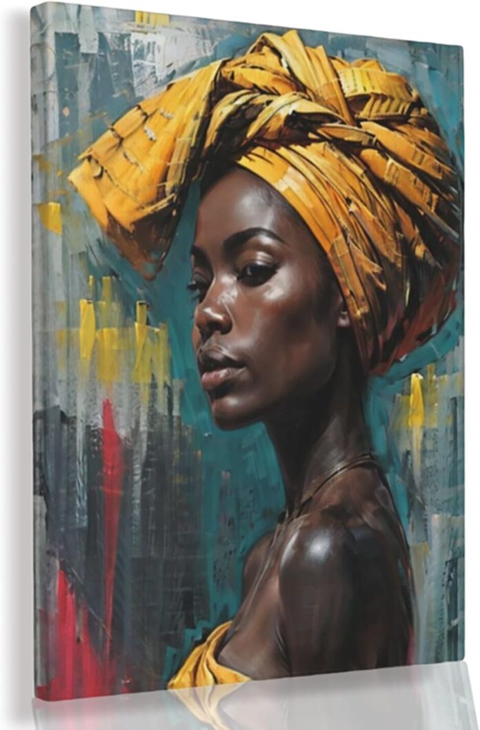 AFRICAN WALL DECOR QUALITY:Gold african woman wall art for bedroom with a quality canvas ensures longevity. Specialized inks allow for vibrant, colorfast prints.