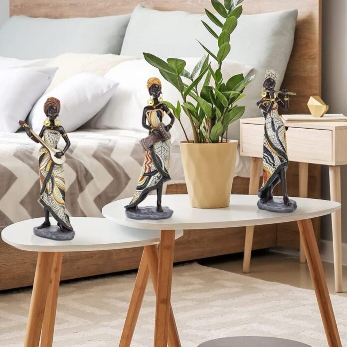 【African Decor】African Lady Figurines blends well with most home decor. Ideal home decor living room, african decor, room decor, office decor. The african women statue is suitable for many places such as shelf, tabletop, bookshelf, bedroom, desk, tv cabinet, office, study, etc. It can decor your desktop well, adds life into any space