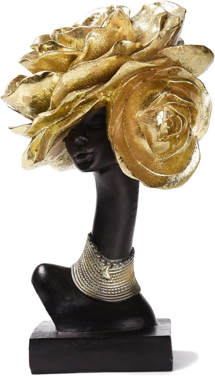 Unique Statue— This African American black girl with rose statue is beautiful and advanced. Suitable for living room, TV cabinet, study room, bedroom, shop, ect. Unique home desk decoration. Perfect collectible statue figurines gift.