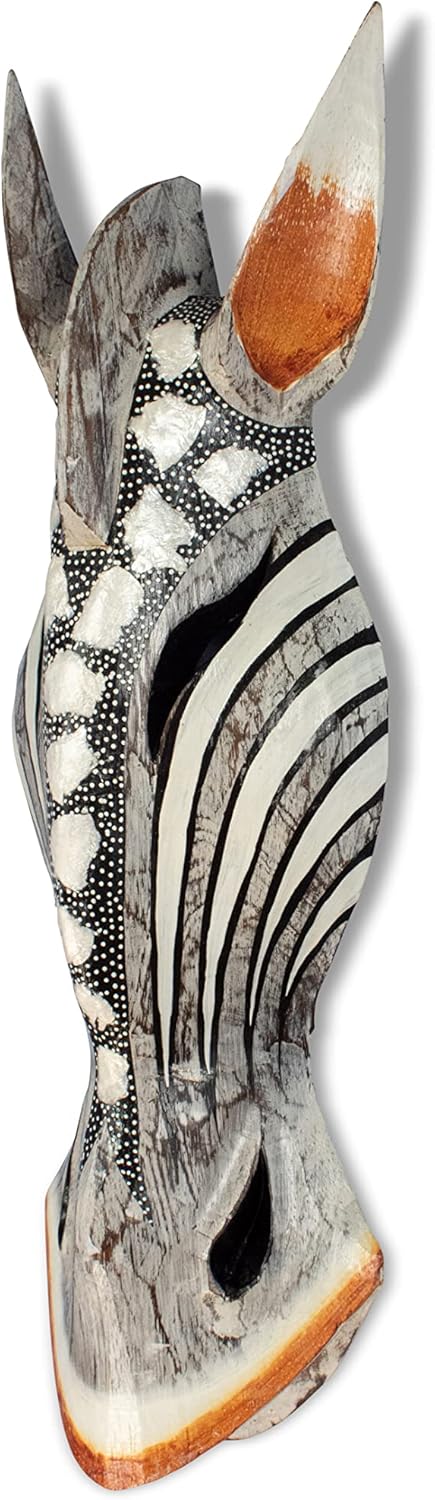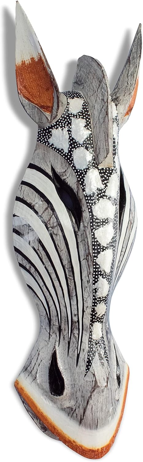Revered as Africa’s “gentle giant,” the giraffe is the iconic safari animal that inspired the captivating design of this African tribal mask sculpture. Handcrafted from real wood and carefully detailed by hand, the handmade wall art decoration is uniquely authentic. Its black and pearl color scheme and elongated shape are distinctly African.