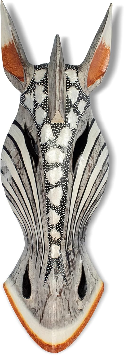 Revered as Africa’s “gentle giant,” the giraffe is the iconic safari animal that inspired the captivating design of this African tribal mask sculpture. Handcrafted from real wood and carefully detailed by hand, the handmade wall art decoration is uniquely authentic. Its black and pearl color scheme and elongated shape are distinctly African.