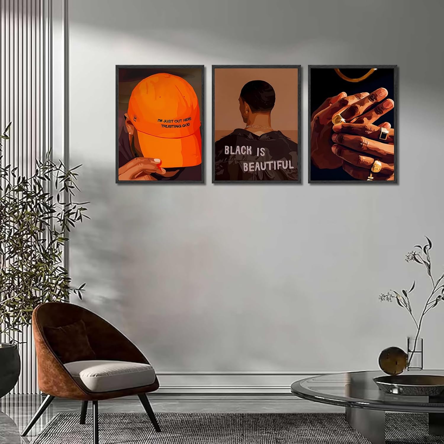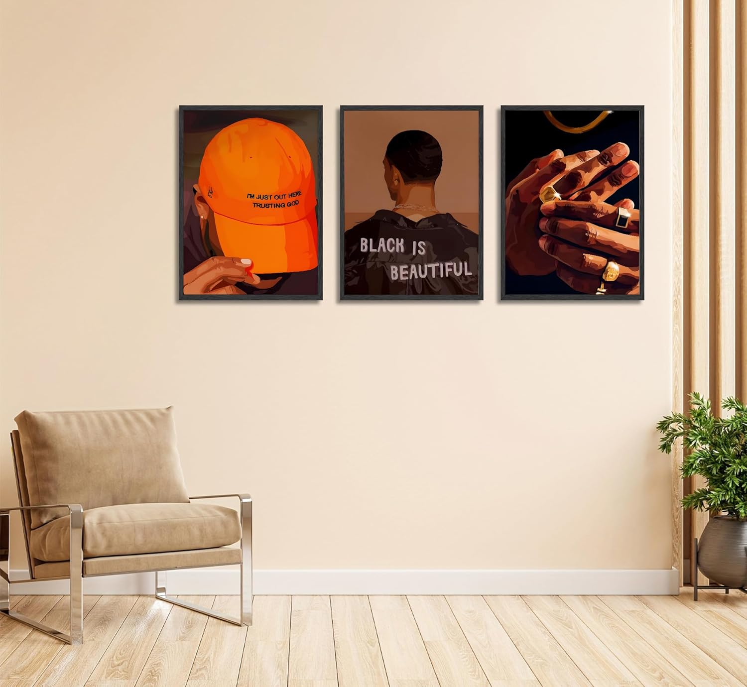 African American Wall Art: Elevate your living space with our Black Men Canvas Wall Art Set of 3, featuring striking fashion-inspired designs that celebrate African American culture. Each poster print showcases the unique style and charisma of Black men,instantly adding character to your home