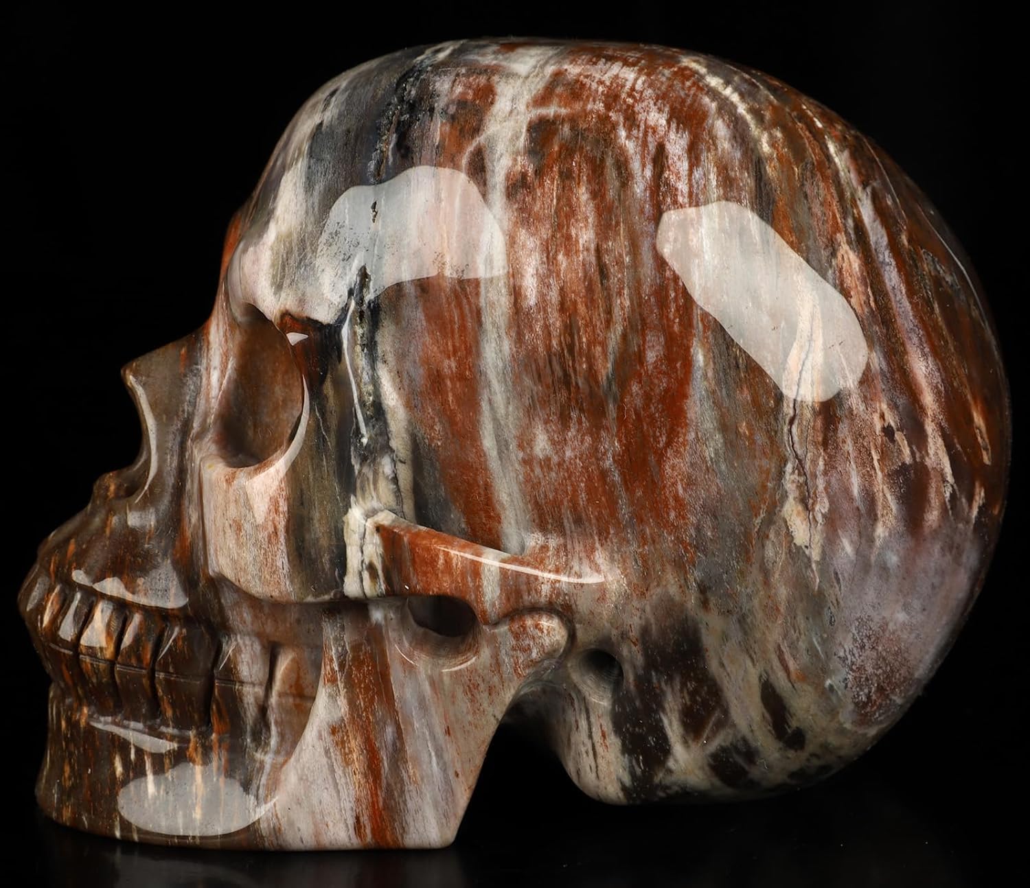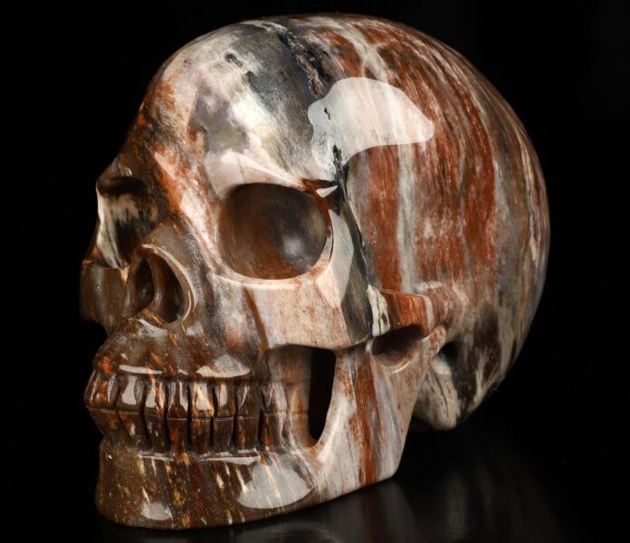 Beautifully Carved Fine Art: Natural gemstone sculpted with our exclusive crystal Realistic skull design (African Petrified Wood).