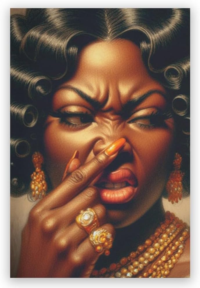 High-quality canvas with clear details: Printed on premium canvas using high-definition printing technology this Black Girl Pinch Nose Poster Print offers bright long-lasting colors and fine details making it ideal for decorating bathrooms living rooms bedrooms and other spaces