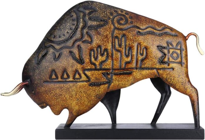 African culture: Native American cultural buffalo sculpture, behind the mysterious color of wild is the precipitation of culture, and the buffalo is a symbol of strength and majesty.