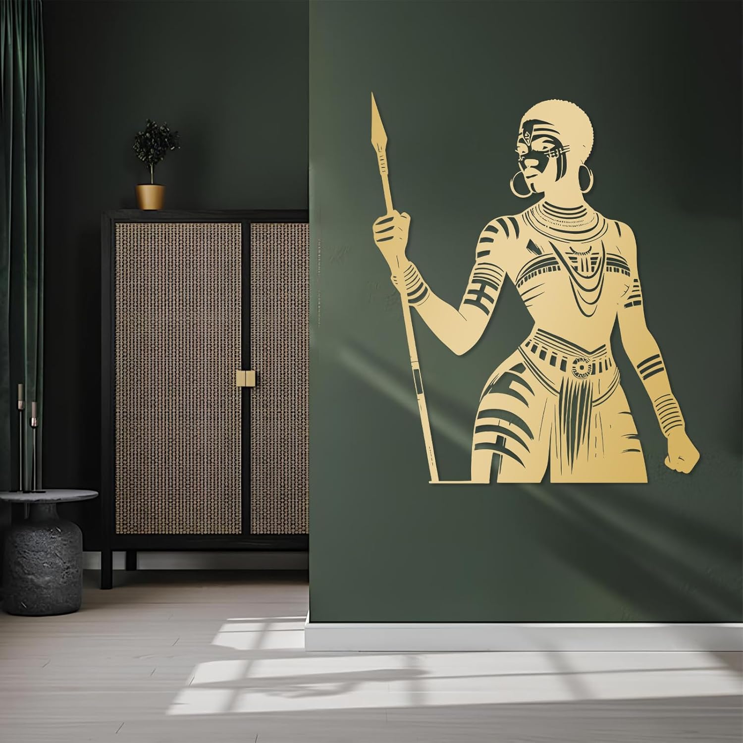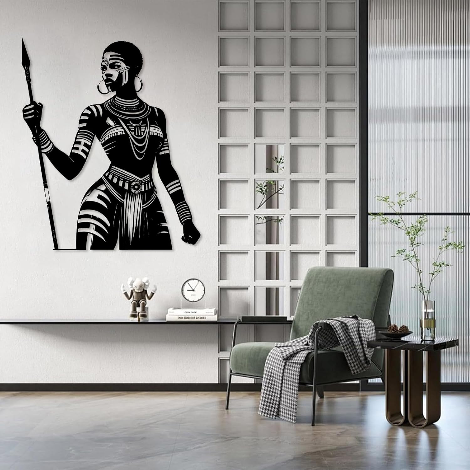 African Women Metal Wall Art: Women wearing traditional clothing and holding spears represent strength, tenacity and courage; This decor not only beautifies the room, but also conveys a deep African culture and symbolism