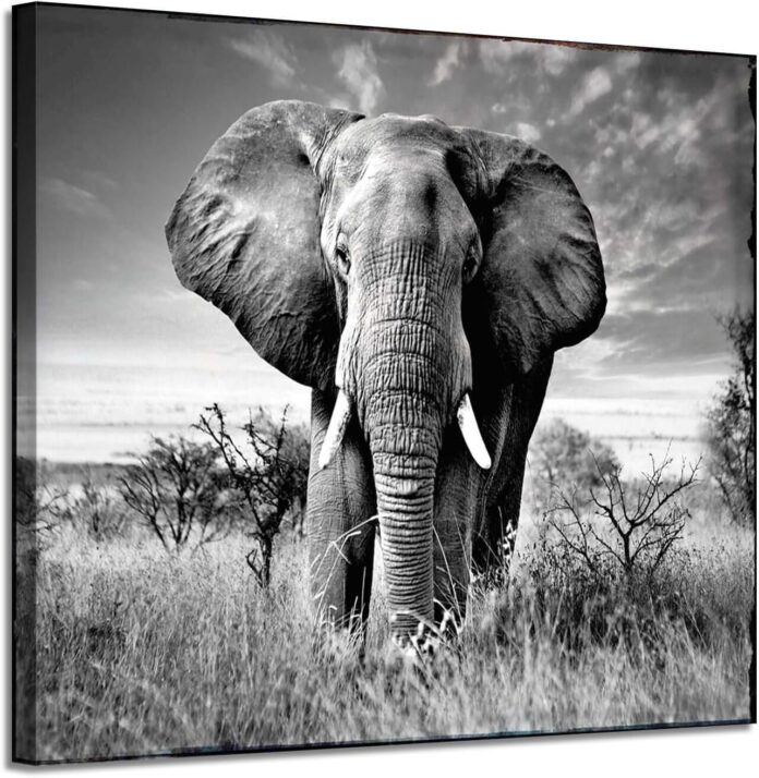 Wildlife Wall Canvas Decor: This black and white African elephant canvas print artwork is a spectacular addition to canvas art studio traditional style animals wall art collection