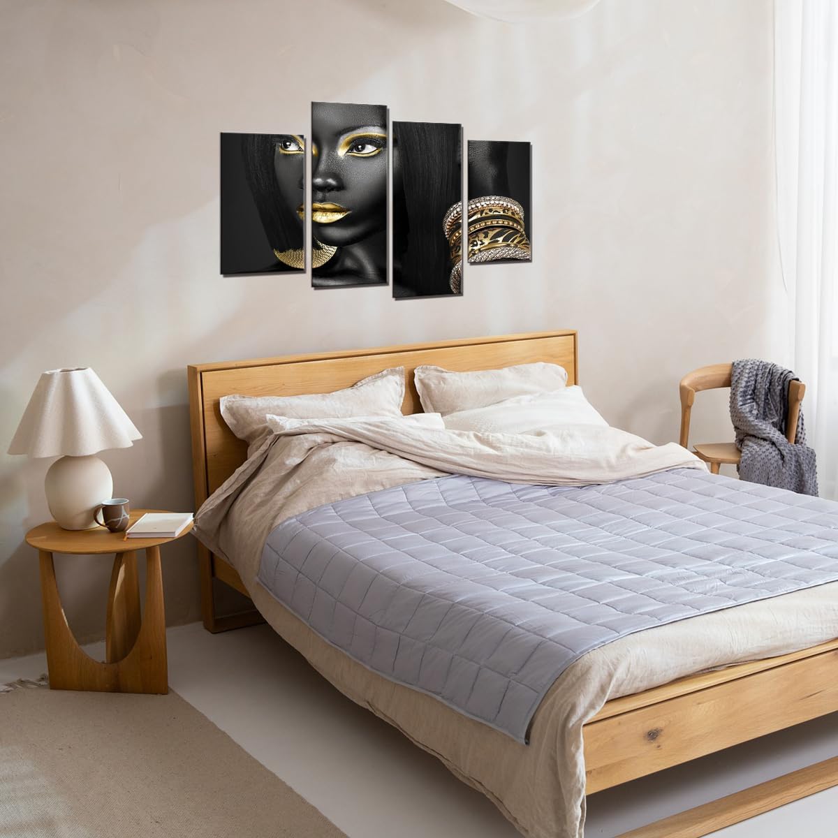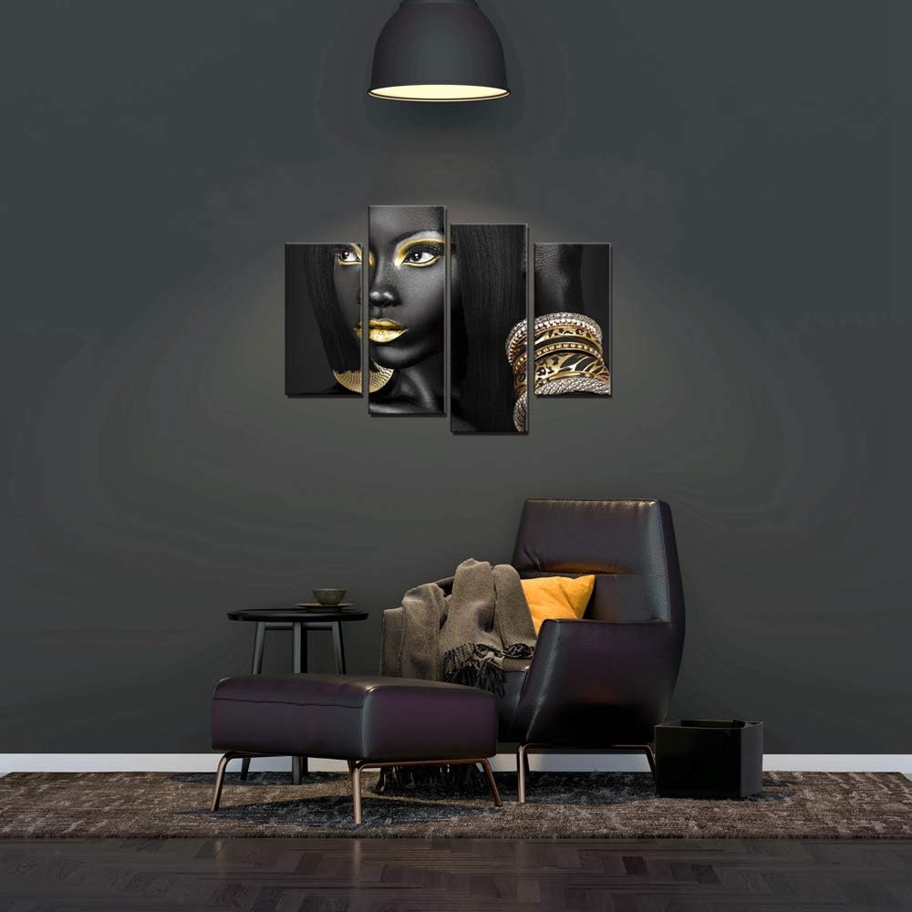 SIZE:8x18inchx2+8x22inchx2(20x45cmx2+20x55cmx2).Classic black and gold pairing,beautiful African girls,mysterious and fashionable artworks,suitable for hanging in bathroom,bedroom,home,living room,corridor,office,restaurant,girl bedroom,and more.african black women queen artwork for home office wall decor frame black girl nurse decor gold canvas of african american girls